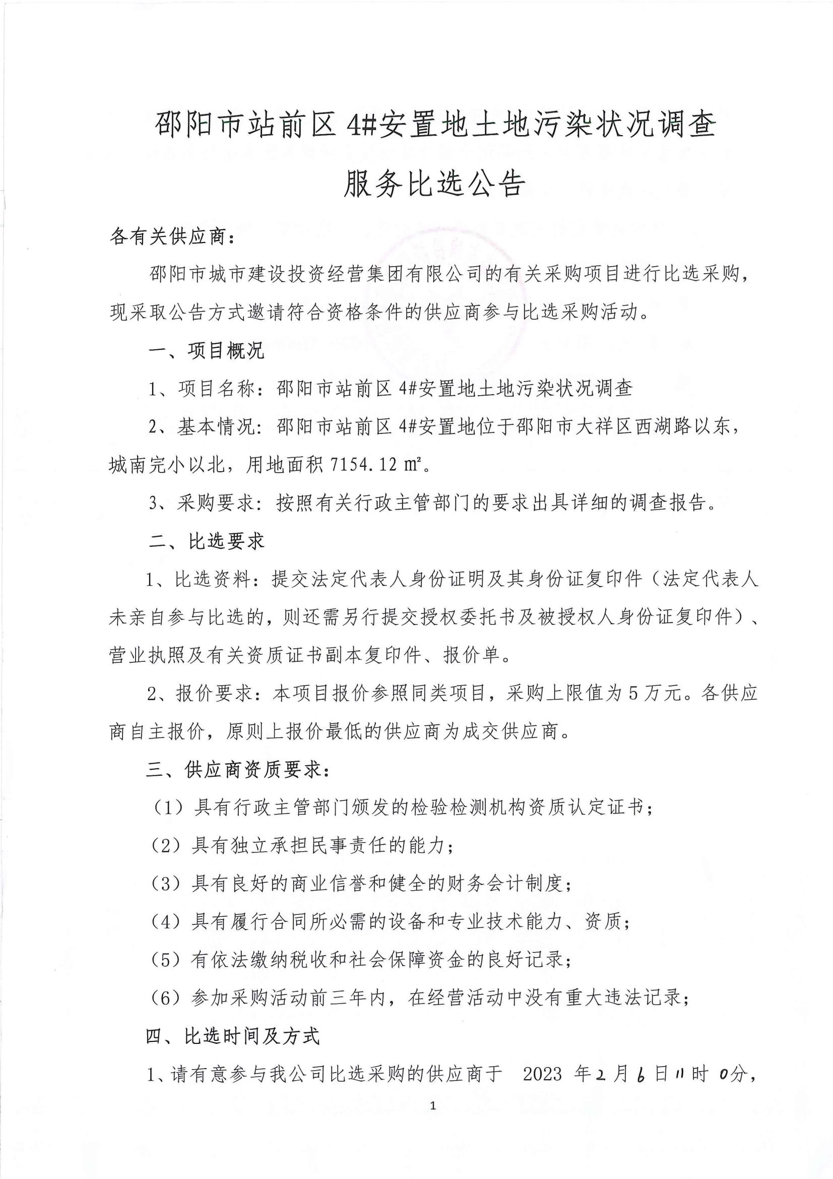 邵阳市站前区4#安置地土地污染状况调查服务比选公告