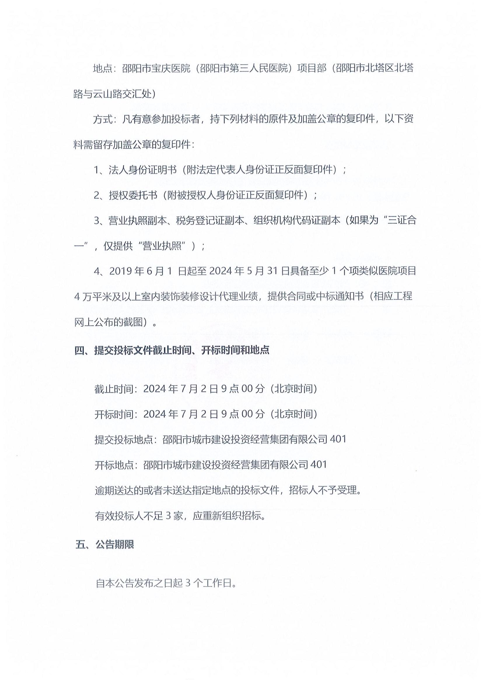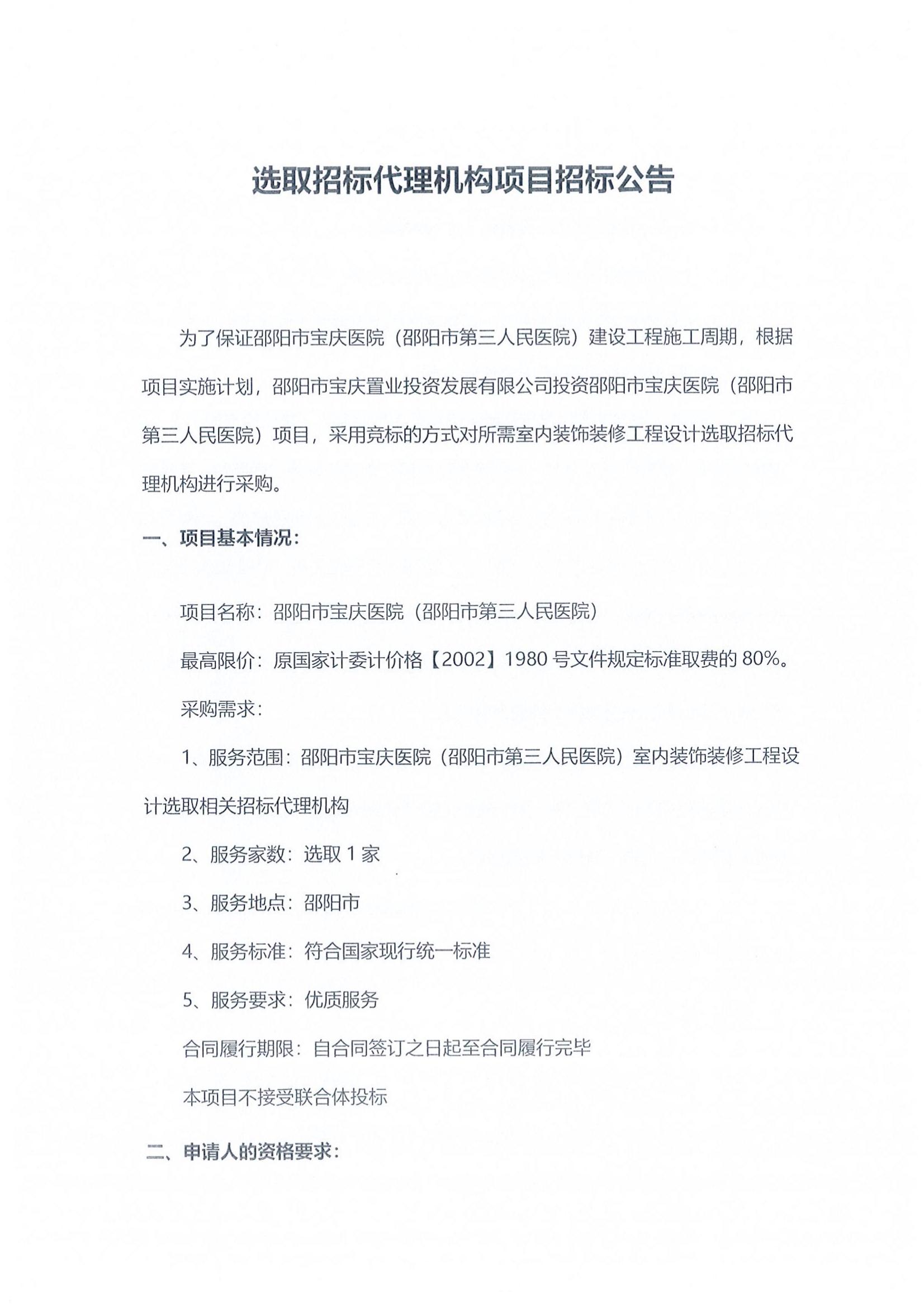 选取宝庆医院室内装饰装修工程设计招标代理机构项目招标公告