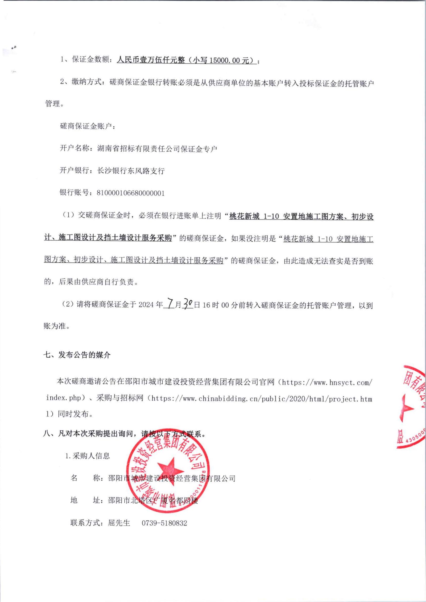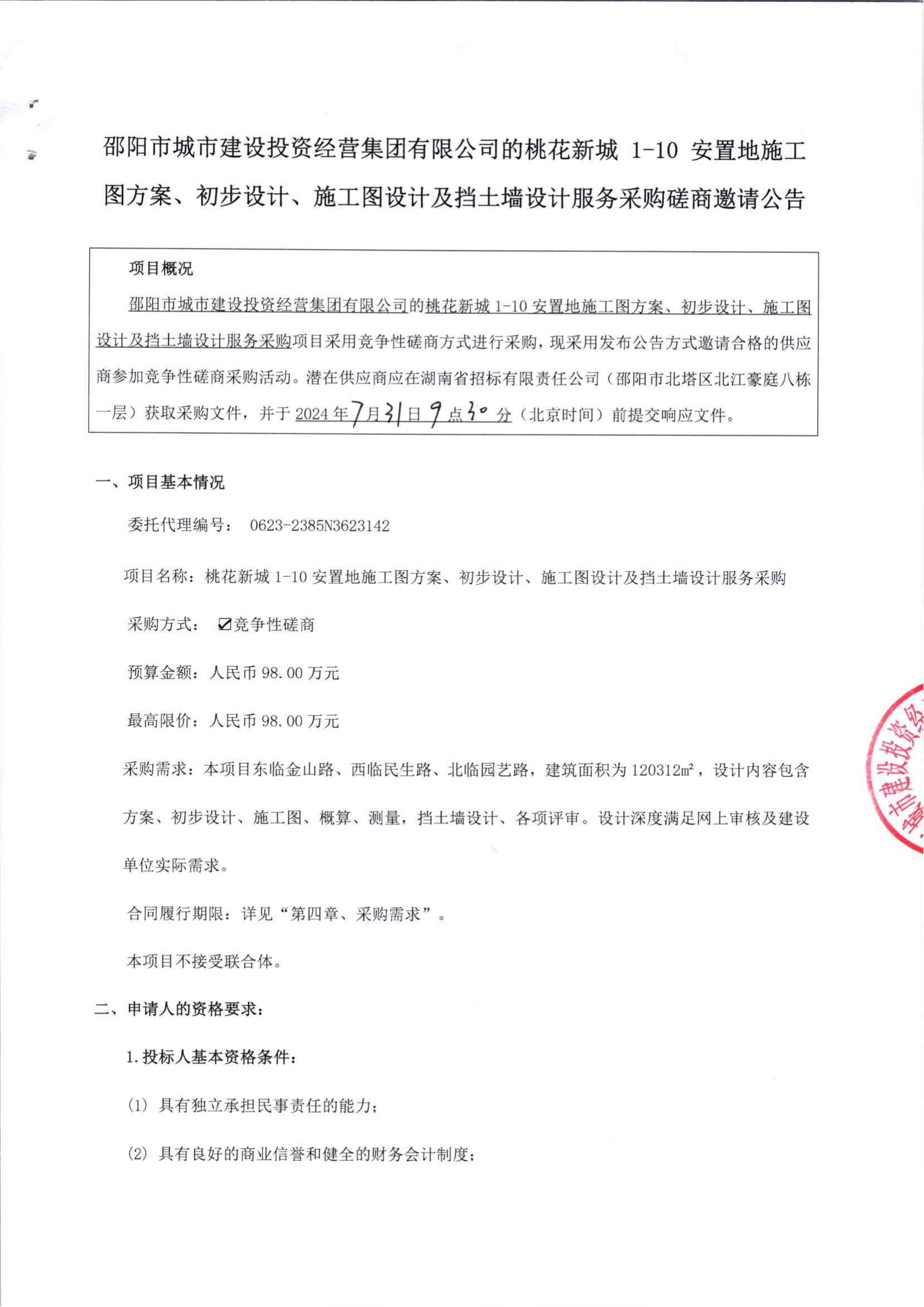 桃花新城 1-10 安置地施工图方案、初步设计、施工图设计及挡土墙设计服务采购磋商公告