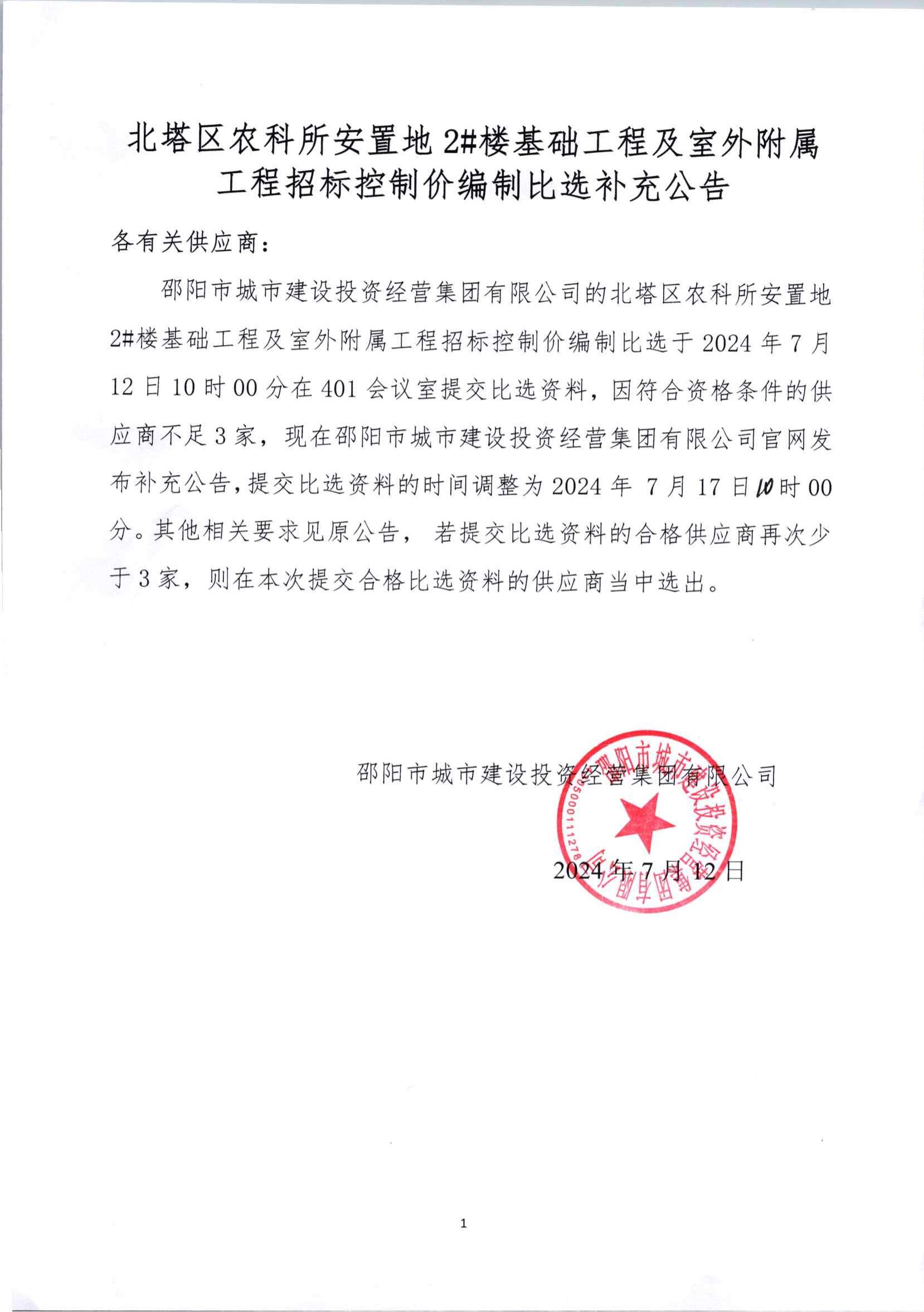 邵阳市城市建设投资经营集团有限公司2024年第二期中期票据主承销商选聘采购项目竞争性谈判成交公告..