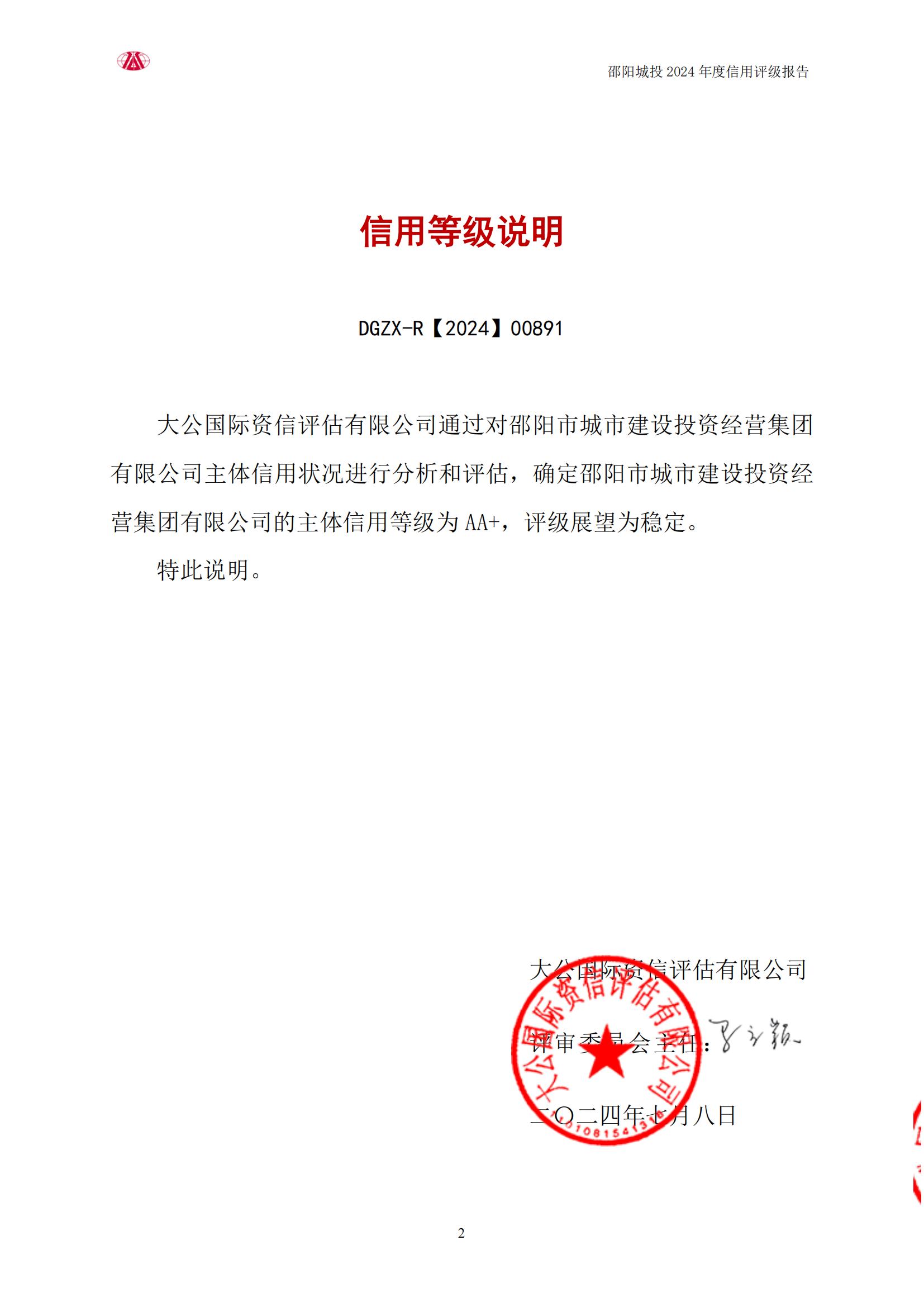评级报告-邵阳市城市建设投资经营集团有限公司2024年企业信用评级