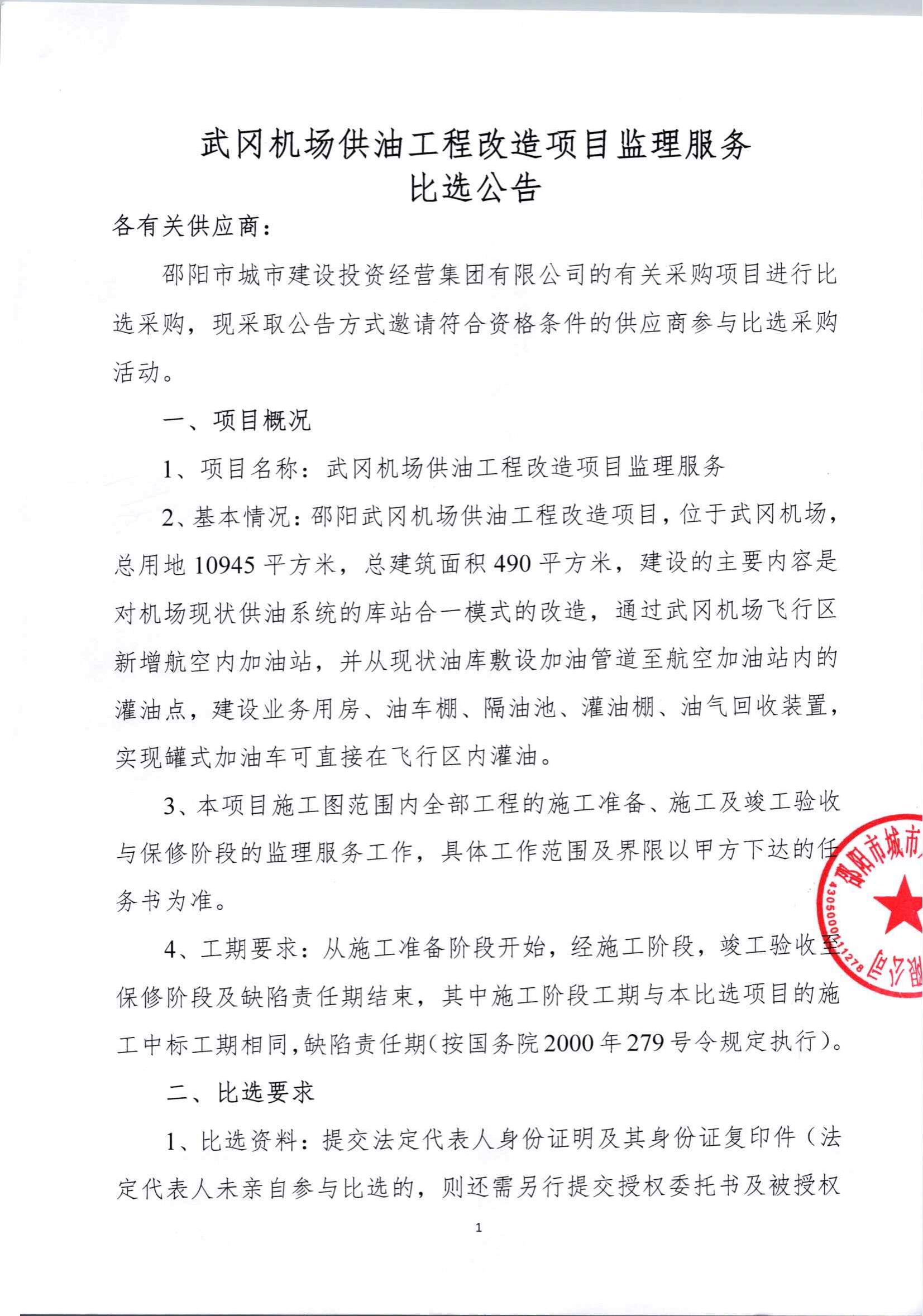 7.25比选公告武冈机场供油工程改造项目监理服务
