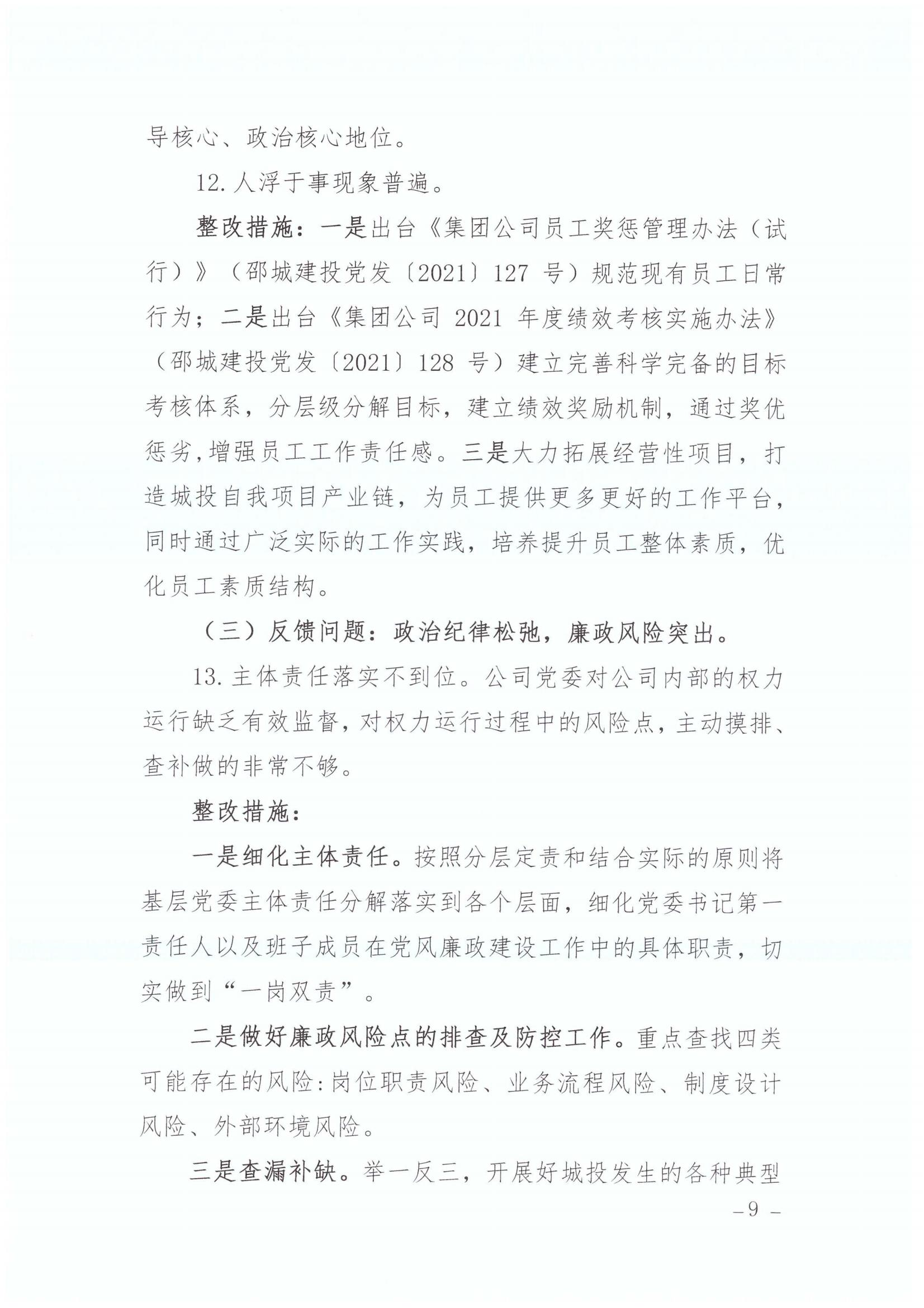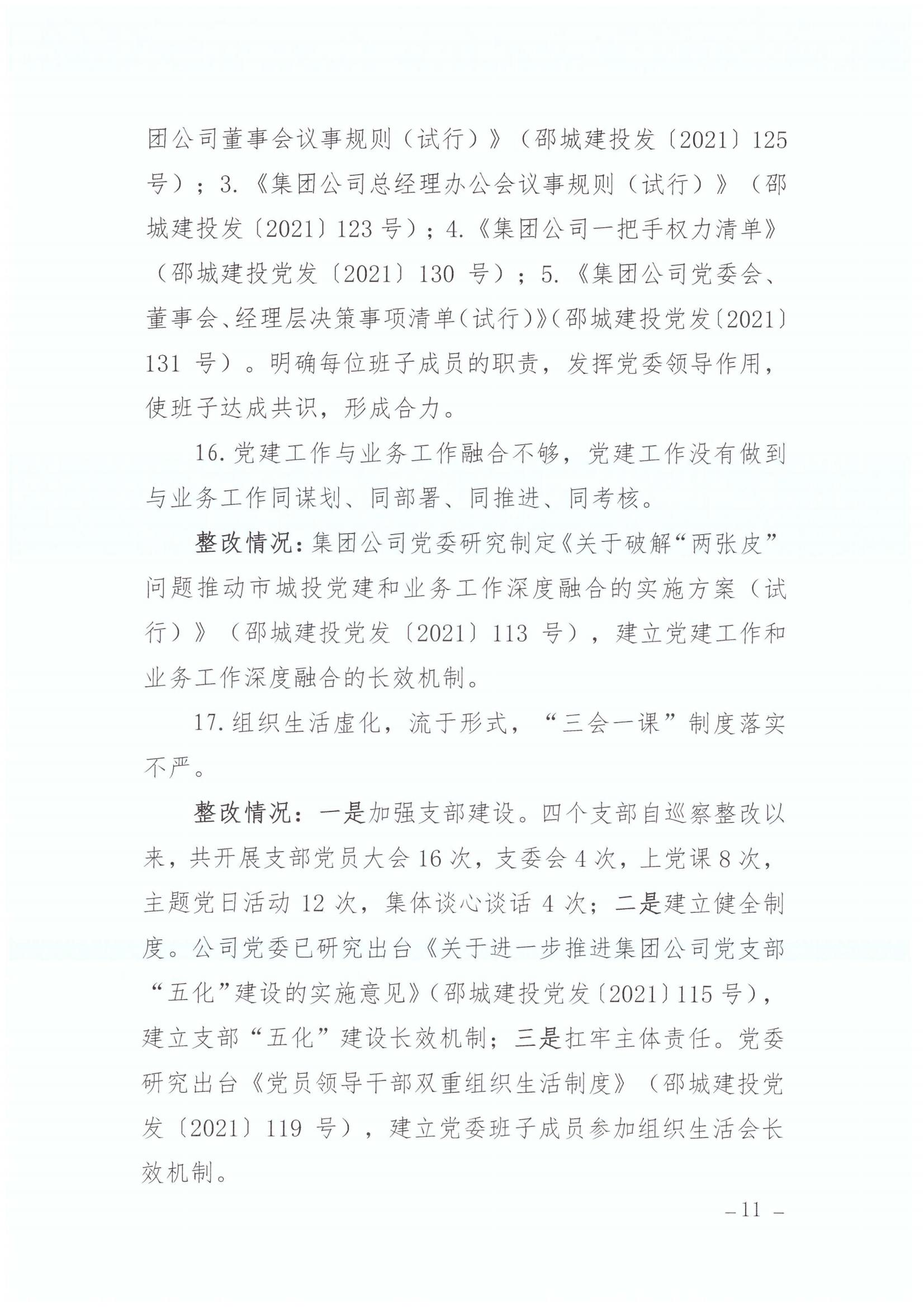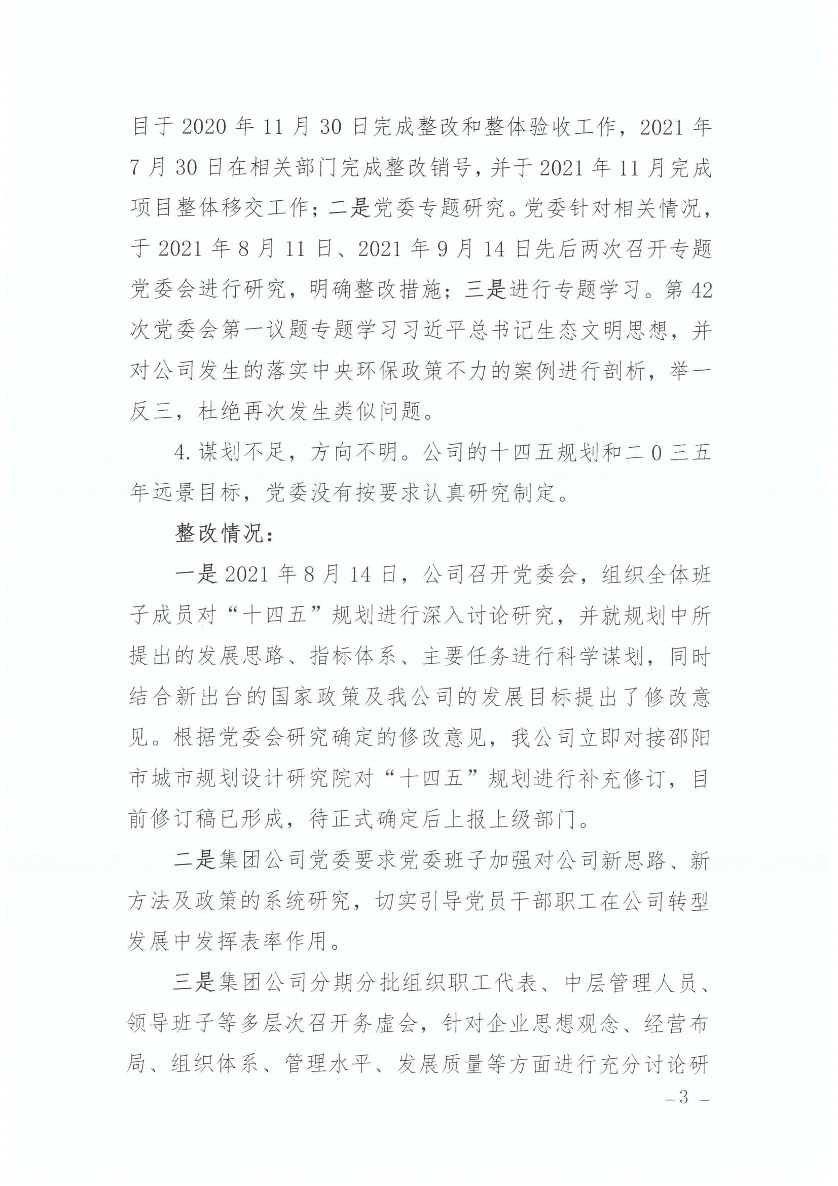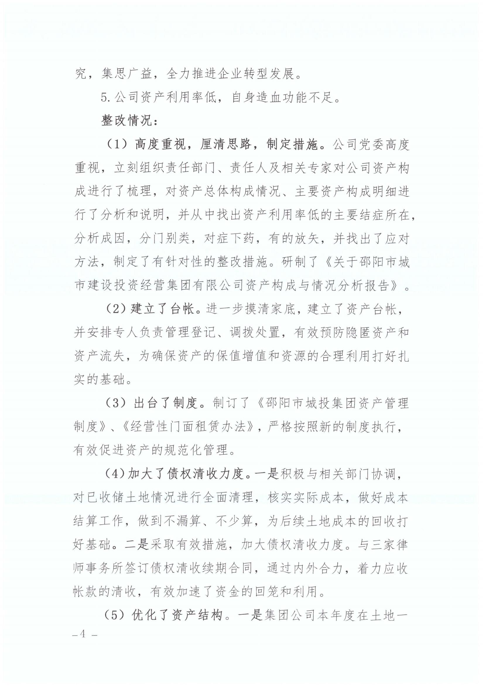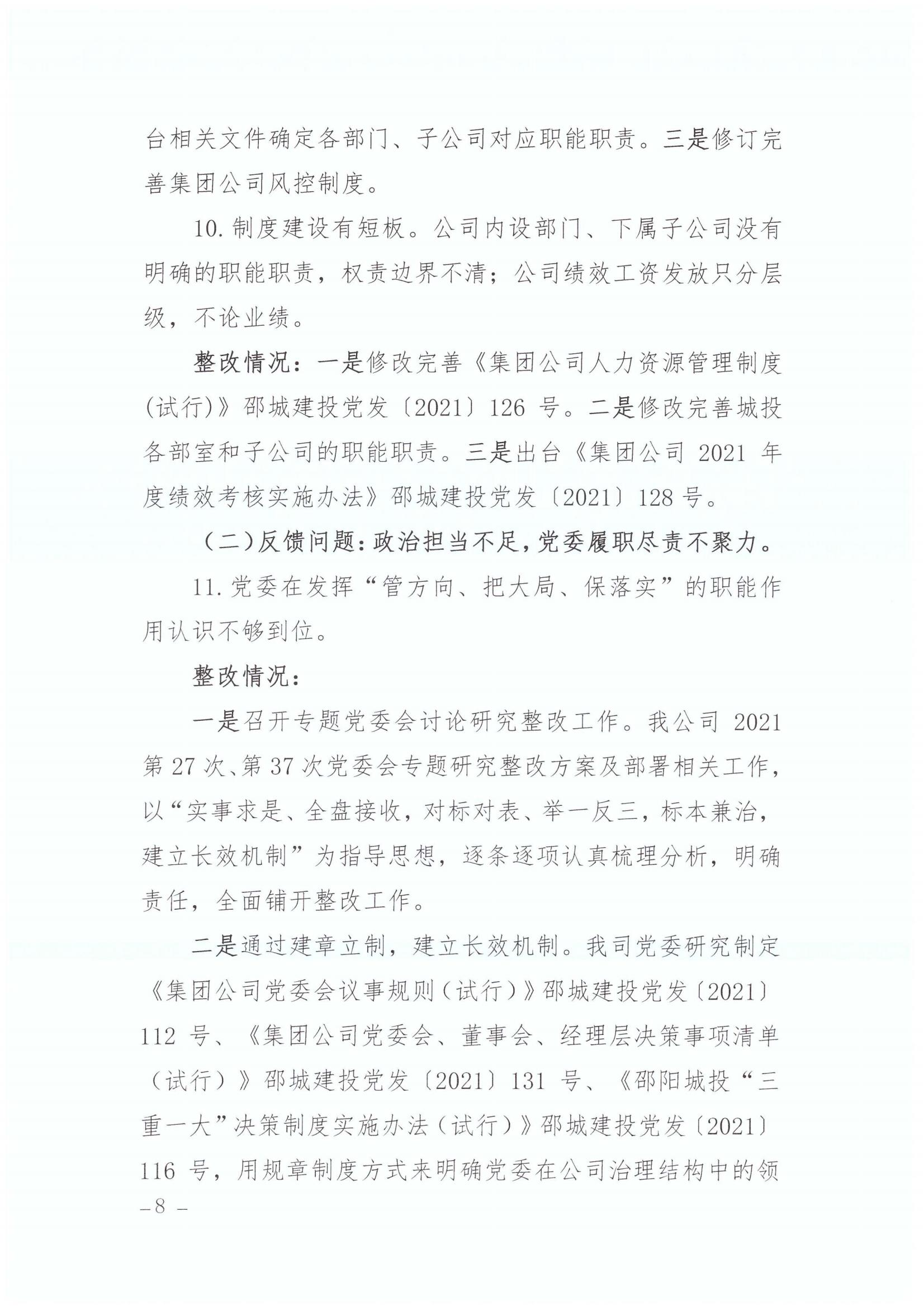 中共邵阳市城建投党委关于巡察整改进展情况的通报
