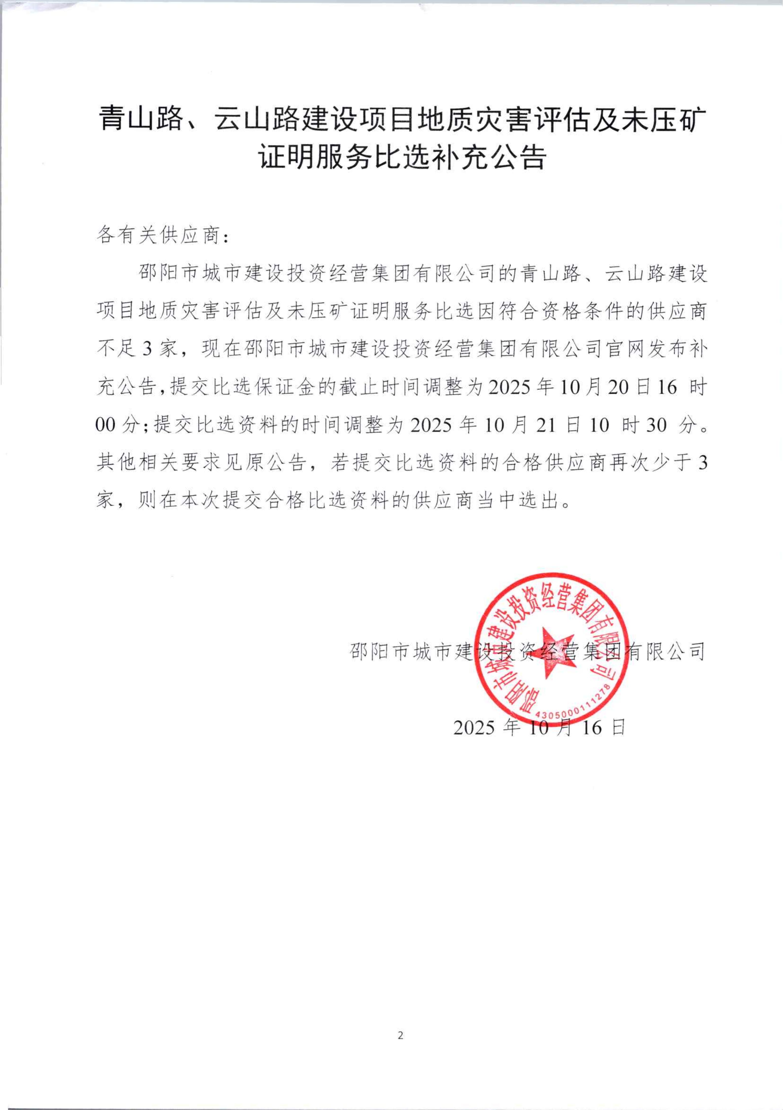 青山路、云山路建设项目地质灾害危险性评估及未压矿证明比选补充公告