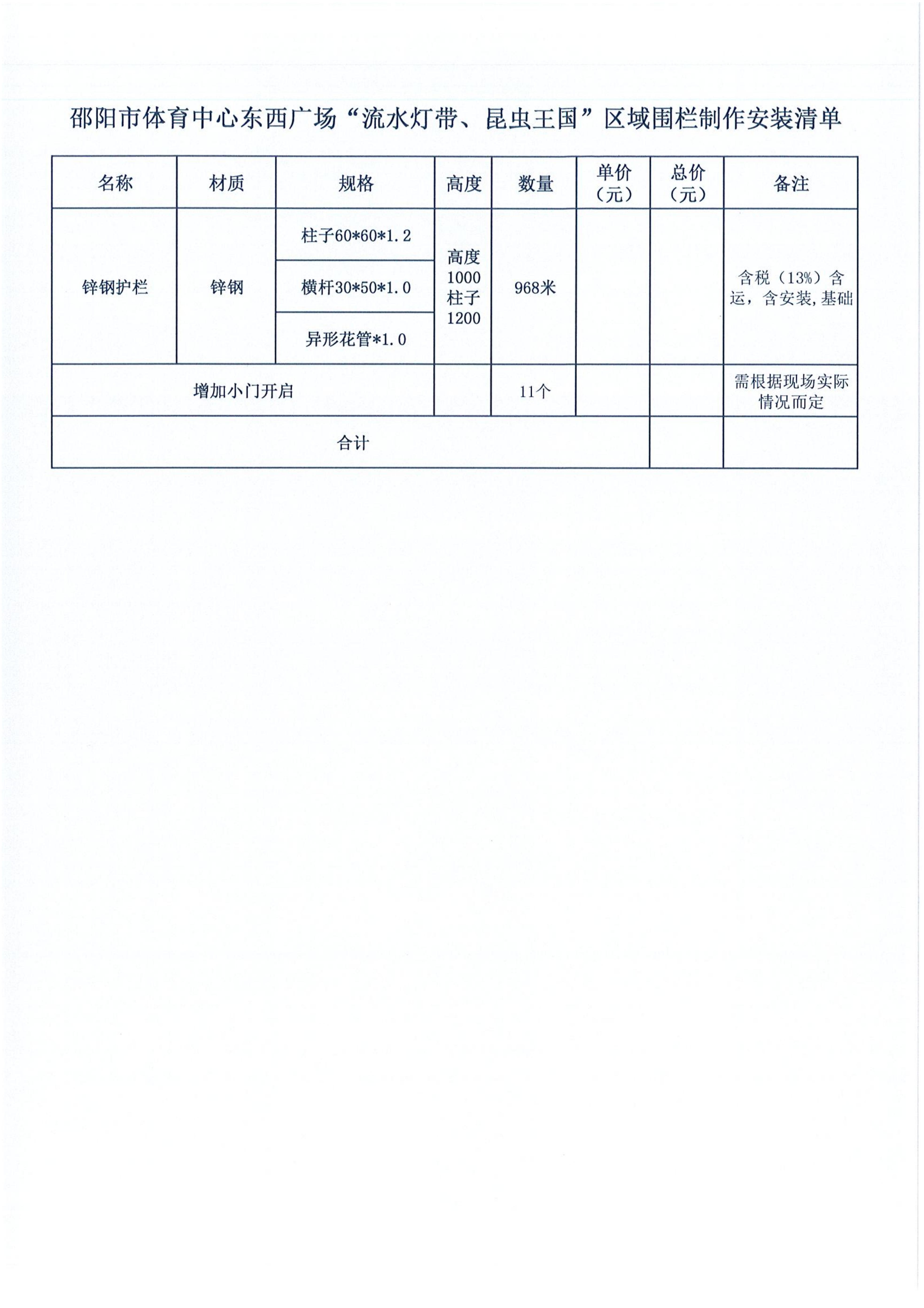 邵阳市体育中心东西广场“流水灯带、昆虫王国”区域围栏制作安装项目比选公..