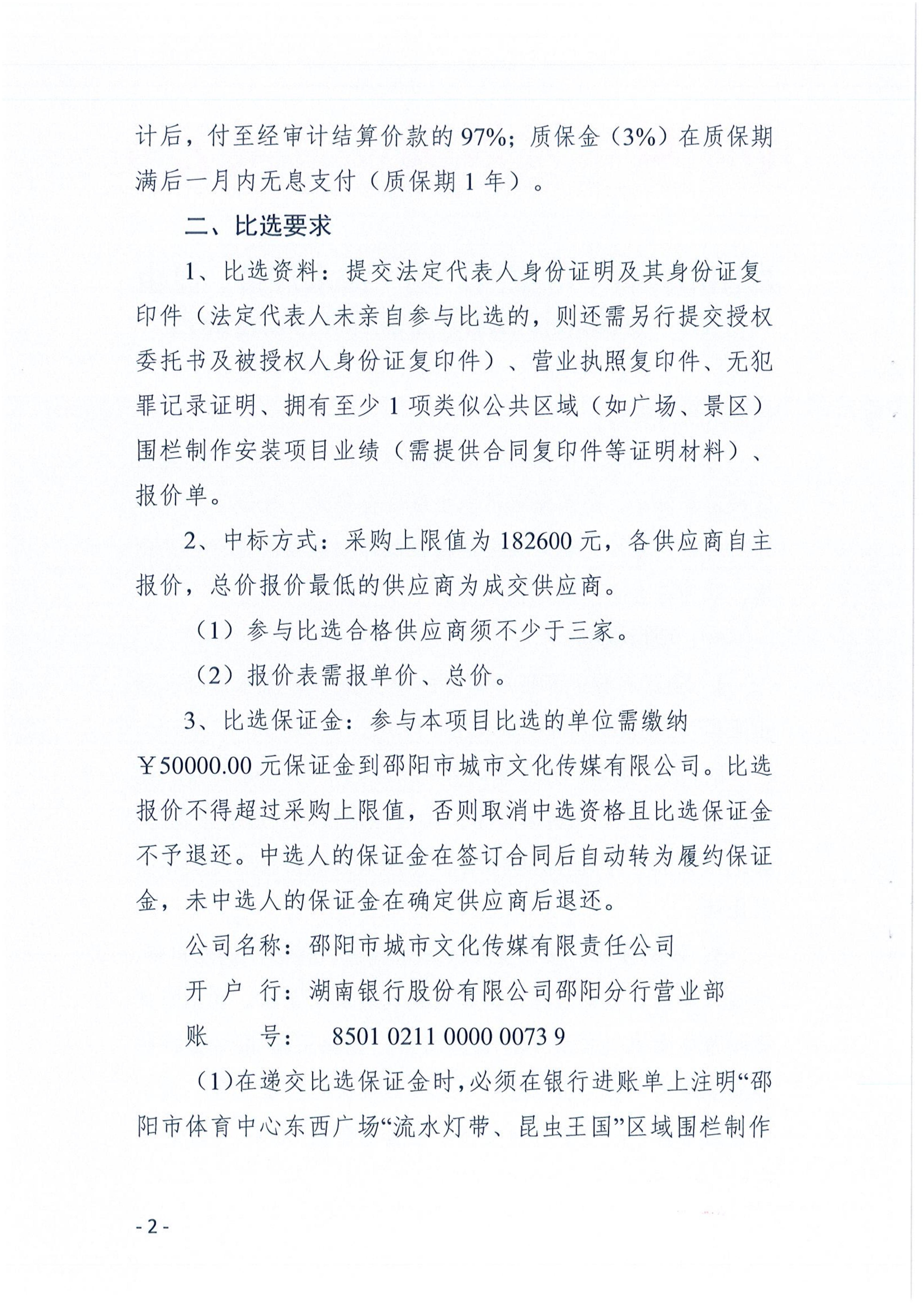 邵阳市体育中心东西广场“流水灯带、昆虫王国”区域围栏制作安装项目比选公告