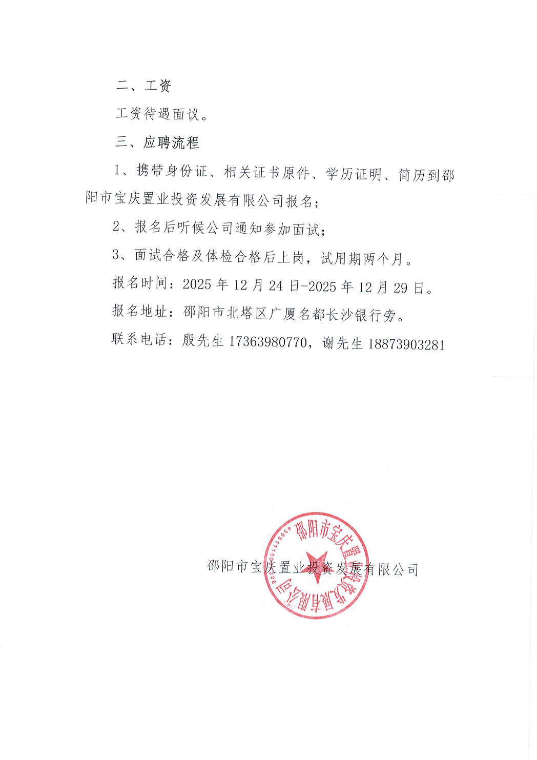 邵阳市宝庆置业公司劳务外聘人员招聘的公告